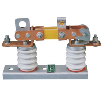 产品主要由触刀、触头、支柱瓷瓶、底座等件组成,每3只为一组,产品体积小、重量轻,便于高空安装,触刀和触头接触采用弹簧锁紧方式,接触良好可靠,在一般振动下不会自行分闸.如维修或更换熔片,只要用钩棒拉开分闸部分将触刀摘下,在地面更换熔片再用钩棒将触刀挂上、合闸。