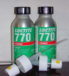 乐泰770处理剂用于聚烯烃或其它低能表面材料的表面上。与乐泰瞬干胶配合使用,其特点是干燥时间短,及在零件寿命长。loctite7452是促进剂,具有侵蚀性清洁的性能,促进所有瞬干胶的固化速度。 loctite755是表面清洗剂,毒性低,不易燃,能除掉一切表面油渍.