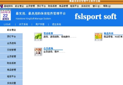 佛盛龙羽毛球管理操作系统――提供了集成的羽毛球财务管理、人力资源管理、采购管理、分销管理、供应链管理、会员管理、商品管理、物柜管理、饮食管理平台等多个应用模块,并为球馆提供行业及个性化解决方案、移动商务解决方案,真正做到收银不能做假、会员轻松刷卡、让企业更形象的球馆电脑一体化管理平台。