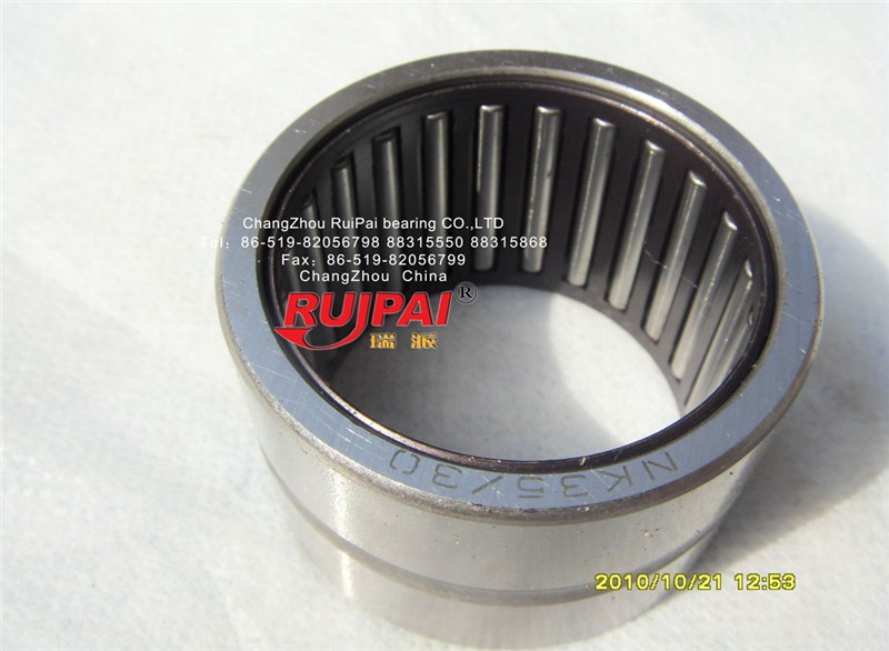 有内圈或无内圈满装滚针轴承该种轴承外圈有油孔,可以从外圈油孔中供油润滑,并带双挡边,内圈无挡边,无保持架,可分别安装内圈,外圈及满装滚针。无内圈满装滚针轴承适用于径向尺寸受限制的部件中,由于无内圈,与配合的轴径表面直接作为滚动面,要求其表面硬度不低于HRC60,表面粗糙度值Ra值不大于0.6除,有内圈或无内圈满装滚针轴承该种轴承不限制轴或外壳的轴向位移。