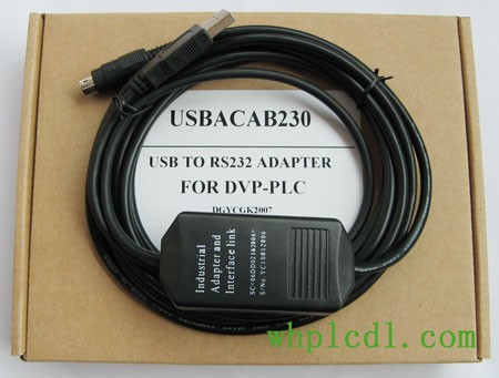 USBACAB230 USB 接口的台达 DVP 系列 PLC 编程电缆, USB/RS232 接口,连接 PLC 的编程口( COM1 ), 3 米,带通信指示灯