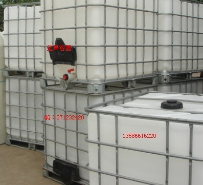2、IBC集装桶的内容器采用高密度聚乙烯材料,外护套为镀锌钢管焊接的网格,底盘采用四向进叉型全钢型托盘,放置稳固,便于排除容器内的残余物。