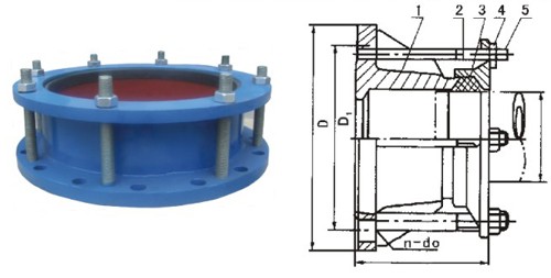 VSSJA法兰式松套伸缩接头:松套伸缩节安装在管道上后,拧紧螺母弹性密封圈,在螺母压盖的作用下相互斜度,紧压在管子外圈起密封和连接作用。当温度变化时管子能在接头中间自由的伸缩,当地基下沉,管子能偏斜,并确保密封无渗漏,从而起到自动补偿之目的。