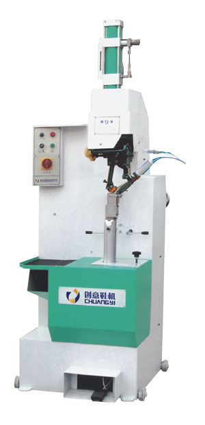 型号:CY-711;品牌:创艺;机械尺寸:880X800X2150mm;重量:325KG;空气压力:0.6Mpa;电机功率:0.2KW 本机适用于任何男女鞋的钉跟工序,采用进口PLC控制系统,准确高效。自动压着且不损伤任何高度的鞋跟。