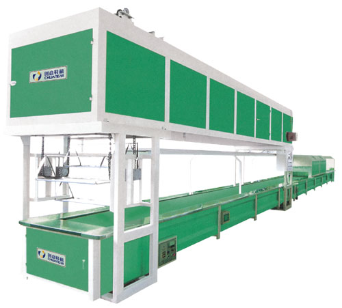 型号:CY-797;品牌:创艺;本生产线采用不锈钢圆管作输送带,耐高温,耐腐蚀,以无极变速电机作动力,可任意调节速度。全封闭式环保型烘道内衬有不锈钢板,耐高温、耐腐蚀,并采用热风循环原理,升温快,运行成本低,保温性能好,可任意调节温度