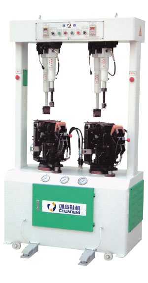 型号:CY-762;品牌:创意;机械尺寸:1160X700X1920mm;重量:675KG;电机功率:2HP;全油压设计、压力大、贴合牢固,可自由调整鞋头翘度大小、以提供最佳贴底效果。自平衡压杆设计,使鞋底于受力均匀,不发生空隙。可贴合任意高跟的女鞋和任意尺寸的男鞋。