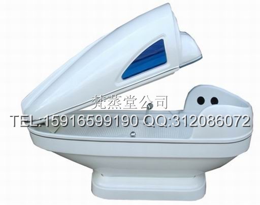 3、温度设定后,启动蒸汽键(2)后3分钟左右即出蒸汽,蒸汽达到设定温度,打开本机盖,将座椅高度调到适宜,进入机内,头部外露,身体封闭在机内。