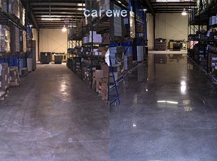 1. 耐磨:CAREWEL混凝土密封固化剂能够将混凝土中的各种成分固化成一个坚硬的实体,增加硬度和密实度。经使用CAREWEL混凝土密封固化剂熟化后, 耐磨度提高6倍以上。
