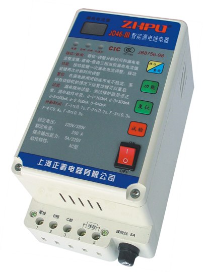 JD46智能漏电继电器与交流接触器或断路器组合成漏电保护装置,主要功能是对有致命危险和用电设备提供间接接触保护,该产品适用于中性点直接接地的380V/220V低压配电系统。
