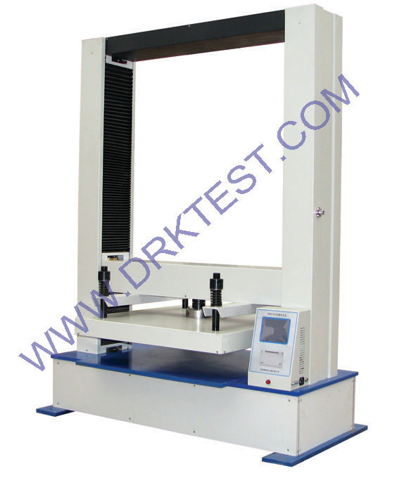 空箱承压强度(抗压强度):按GB/T 4857.4-1992《包装 运输包装件 压力试验方法》进行平面压力试验。将试样样品置于试验机两平行压板之间,然后均匀施加压力,记录载荷和压板位移,直到试验样品发生破裂,或载荷或压板位移达到预定值为止。该项性能不仅反映出整个制箱工艺的综合特性,直接关系到瓦楞纸箱在使用中的安全。即是评价瓦楞纸箱的一个重要的物理性能指标,又是设计瓦楞纸箱的重要条件。堆码强度:将试验样品放在一个水平平面上,并在其上面施加均匀载荷。该项性能特点是一相对稳定载荷在相当长的时间内作用于纸箱,纸箱在静载荷作用下会产生连续的弯曲变形,若长期保持静压力,纸箱将会压塌损坏。产品推荐:纸箱抗压试验机(型号:DRK123A/B)本产品符合GB4857.3 《运输包装件基本试验 堆码试验方法》、GB4857.4 《运输包装件基本试验 压力试验方法》、GB8167-87 《包装 用缓冲材料静态压缩试验方法》。满足纸箱抗压、堆码、定值压缩的试验要求,具备蓝色超大液晶屏幕、直流伺服电机系统、专业、智能的系统软件控制、全中文菜单操作模式、人机友好界面、微型打印机输出规范、详细的试验报告
