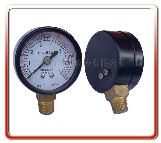 一般压力表使用于测量对爆炸性危险,不结晶、不凝固,对铜及铜合金无腐蚀作用的气体、蒸气或液体介质的压力. 该产品广泛应用于气动元件配套使用.