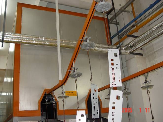 适用:电脑、电子、家电、音响、五金、玩具、稼私、工艺品等其它行业外壳的表面自动喷涂工艺.