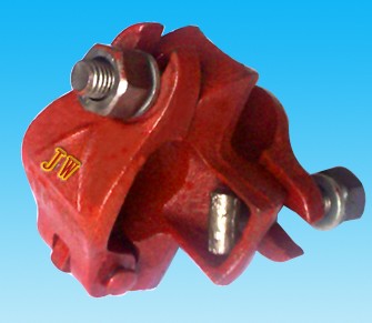 2、旋转扣件:用于两根任意角度钢管交叉联结紧固。也就是脚手架的剪刀撑和高层建筑所用钢管脚手架双面柱的联结扭力距和直角扣件相同。