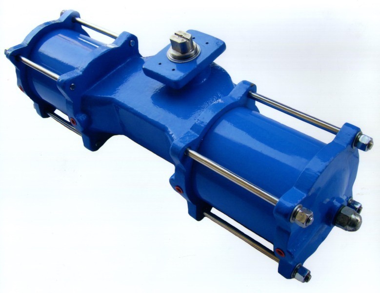 使用双作用执行器,先确定阀门的扭矩,在正常使用条件下,推荐安全系数为15~20%。再根据阀门使用的流体介质增加安全值。对清洁、润滑介质增加20%安全值;水蒸气或非润滑液体介质增加25%安全值;对非润滑的浆料液体介质增加40%安全值;非润滑的干气介质增加60%安全值;非润滑的颗粒介质增加80%安全值。非润滑用气体输送的颗粒粉料介质增加100%安全值; 根据上计算的扭矩值及使用气源压力查找双作用执行器的扭矩表,就可得到准确AW气动执行器型号。