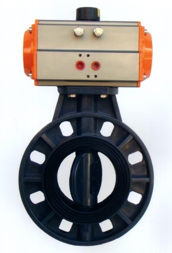 气动塑料蝶阀阀体采用聚氯乙烯PVC聚丙烯或者PP、PPH材料,PVC可耐大部分的酸、碱、盐由低到高浓度的腐蚀,但不耐芳香烃、酮、醚、氯化碳烃类的腐蚀。PP、PPH耐化学性非常好,对一般的酸、有机溶剂的抵抗性好。常用作塑料蝶阀的密封橡胶材料有三元乙丙橡胶EPDM和氟橡胶FPM等。根据其各自的特点而适用于不同的环境:EPDM可耐一般酸碱,耐化学药品性和耐水性好,但不耐矿物油和过热蒸汽(200℃),使用温度在-40~120℃。而FPM耐油、耐热、耐酸碱和耐化学药品性能佳。常用于耐高温、耐腐蚀的场合,使用温度在-20℃~210℃。