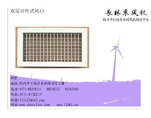 自垂式百叶风口,此风口用于具有正压的空调房间自动排气。通常情况下靠风口的百叶自重而自然下垂,隔绝室内外的空气交换,当室内气压大于室外气压时,气压流将百叶吹开而向外排,反之室内气压小于室外气压时,气流不能反向流入室内,该风口有单向止回作用。