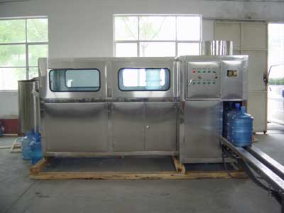 该生产线是专供3-5加仑桶装饮用水生产之用,型号有100型、200型、300型、450型、600型、900型和1200型。该系列桶装生产线由洗瓶、灌装和封口三部分组成。洗瓶机采用多道洗涤液喷射和消毒液喷射,达到洗涤、消毒的目的,消毒液可以循环使用。封口机可以自动封口,输送瓶盖过程口配有卫淋装置,以确保瓶盖无菌清洁。该系列生产线均可自动洗涤、消毒灌装、计数和输出。具有功能齐全、设计新颖、自动化程度高等特点,是集机、电、气于一体的新型饮用水桶装设备。