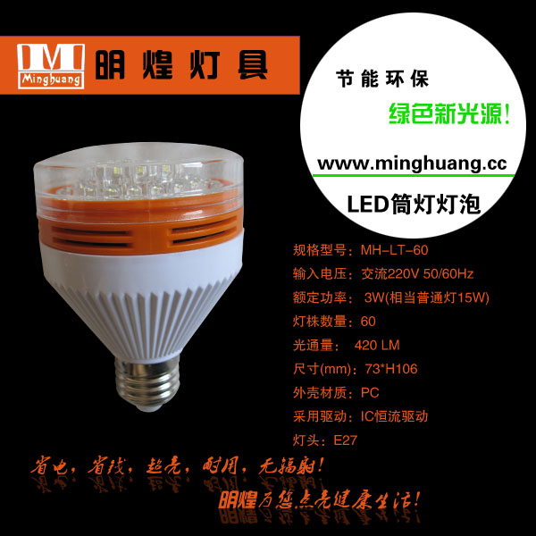 本产品采用进口高亮冷光源LED灯株,高亮,省电,省钱,无辐射,环保耐用,外观设计典雅大方,安装使用方便,和E27螺口灯座连接即可使用(可用于家居照明,酒店宾馆,学校,医院,商务办公楼等场所)