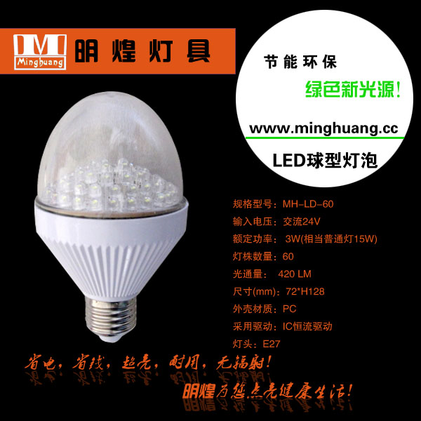 本产品采用进口高亮冷光源LED灯株,高亮,省电,省钱,无辐射,环保耐用,外观设计典雅大方,安装使用方便,和E27螺口灯座连接即可使用(可用于家居照明,酒店宾馆,学校,医院,商务办公楼等场所.