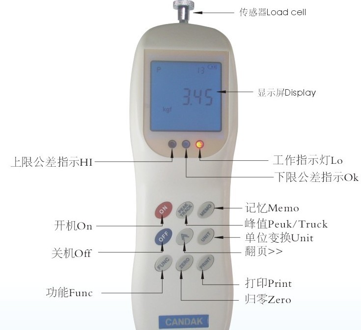 储存99个测量值,删除误操作值及输出。并可统计出储存值中的max,min,ave,rng,dev值,拉压两个方向都可查看统计值