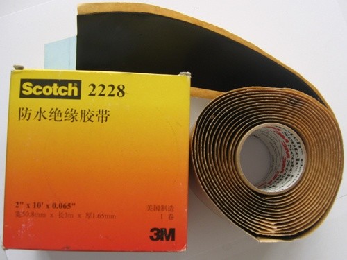 ScotchTM2228防水胶带是一种自融性、从形性良好的电气绝缘及防水密封胶带。它的带基为乙丙橡胶,表面涂有粘接力强、热稳定性好的胶粘剂。它可用在电气绝缘和防水密封等场合。额定工作温度90℃,紧急过载温度130℃。ScotchTM2228胶带和ScotchTM33+PVC胶带一起使用。可对电气线路提供可靠的防水密封和优良的抗紫外线保护。产品特性:? 对不规则表面具有良好的从形性? 与各种电缆相容性好? 自融性胶带? 使用温度范围宽? 优良的耐气候性及防水密封性能? 对铜、铝和电缆护套材料具有极佳的粘接性能应用:? 通信设备基站、天线、窥线等接头处防水? 架空绝缘导线接头的防水密封保护? 电缆外护套修复? 适用于1000伏及以下主绝缘恢复? 适用于1000伏及以下马达引线的绝缘? 35KV及以下母线排连接的主绝缘? 地线的防水密封