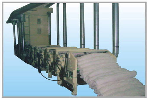 该机由两台三辊话,一台送花机连接而成,具有产量高,产品优,低消耗,机器紧凑操作方便,排尘性好,用工少,生产出来棉花清,丝头长,粉头少等特点
