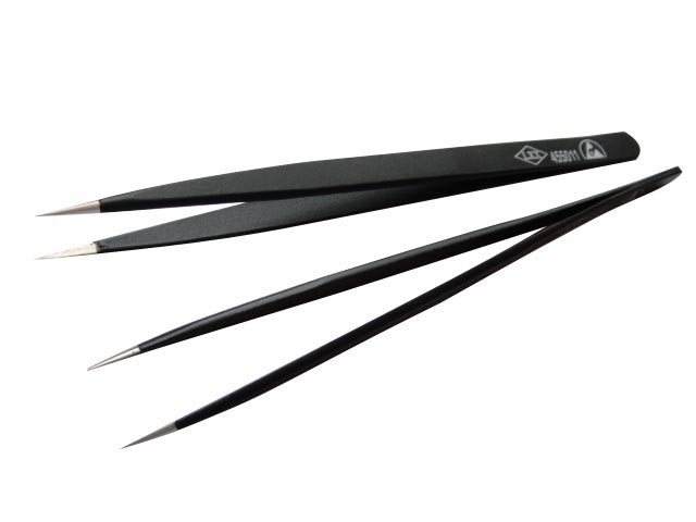 方便、安全;此镊咀特尖细,咀边锋利,适用于高密度集成电路片的组件中
