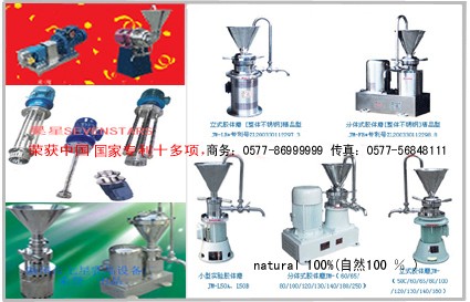 混合机(器)胶体磨|立式胶体磨|分体式胶体磨|卧式胶体磨|温州昊星机械设备制造有限公司联系人:杨剑英|联系电话:0577 86999999浙江胶体磨|封闭式胶体磨;温州昊星机械设备制造有限公司专业致力于设计、开发、制造、销售食品机械设备、制药机械设备、化工机械设备、乳品饮料机配套设备及机电类产品:胶体磨[colloid mills立式胶体磨、钛白胶体磨、制药胶体磨、化工胶体磨、食品胶体磨、药材胶体磨、油漆胶体磨、颜料胶体磨、涂料胶体磨、沥青胶体磨、乳化胶体磨、鸡精胶体磨、陶瓷胶体磨、大型胶体磨、小型胶体磨、中型胶体磨、分体式胶体磨、卧式胶体磨、管线式胶体磨、全封闭式胶体磨、双冷却式胶体磨、分散均质胶体磨]、多功能研磨机、钛白研磨机,多功能研磨机组、湿式超微粒粉碎机、胶磨机、磨浆机、水粉混合器,THJ-L/F系列混合机、MC18混合机、打浆机、均质机、高剪切乳化均机、ZB3A系列胶体泵(转子泵、凸轮泵、三叶泵、蝶型泵、不锈钢容积泵、万用输送泵)、乳匀机、螺杆泵、钛白浆料输送泵、单螺杆浓浆泵、JQB柱塞式气动浆料泵(简称:气动浆料泵、气动泵、浆料泵,又名:气动插桶泵、气动防爆插桶泵、柱塞式油桶泵、气动活塞泵、气动柱塞泵、气动浓浆泵、气动输送泵浦、气动往复泵、气动打胶泵、气动抽液泵,气动防爆不锈钢泵,皮革喷浆泵、高粘度浆料泵、气动往复泵、气动泵浦、打浆料泵浦)、高剪切分散乳化泵、固液混合泵、钛白浆料泵、超高压均质泵、饮料泵、板式换热器、各种过滤设备、洗罐球、清洗旋转球、自动喷球及卫生级卡箍、活接头、阀门管道配件,产品服务领域覆盖了工业、农业、交通、能源、建筑、轻工、汽车、船舶、矿山、冶金、陶瓷、钛业、高校科研院所重点实验室、航空航天等国民经济重要产业领域,为全球140多个国家和地区提供专业化服务。