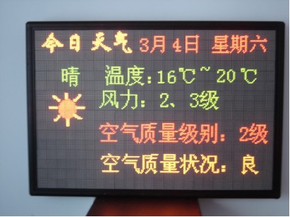 恒光达气象显示屏内含恒光达GSM无线模块,可实现远距离 、定时、自动传输,有四色预警图表,包含中国气象局的所有预警符号