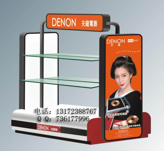本产品用高密度中纤板和铁喷漆弯柱而组成的电磁炉/豆浆机等等小家电类的产品精美促销展示柜