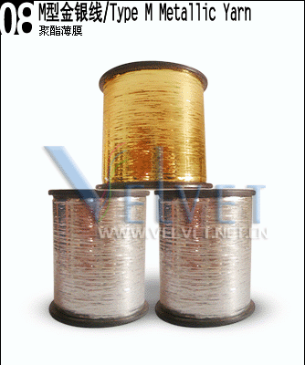M型产品是由聚酯薄膜经精密度极高的分条机直接分切而成。色彩华丽、光艳夺目。颜色分银色、浅金、深金、三彩、珍珠幻彩、镭射及其它各种彩色。常用厚度为:23u(25u),12u(15u),30u(珍珠幻彩、镭射),60u(70u);宽度为:1/50、1/69、1/85、1/100、1/110、1/120、1mm、2mm等,也可根据客户来样生产。该产品主要用于花边、织带、商标、刺绣、织袜、围巾、经编布、沙发布、发饰、厨房洗涤用品等
