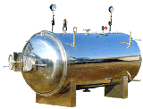 GT7C 型系列卧式杀菌锅(高温杀菌机,高压杀菌锅,杀菌釜,杀菌罐)是利用压缩空气作反压力的圆筒体杀菌设备,其锅盖锁紧形式是采用自锁楔块啮合方法,开闭启动方便,适应于罐头、饮料、牛奶、卤制品等马口铁罐和玻璃罐罐头、塑料袋或耐蒸煮沸软包装物的实罐产品的杀菌处理工作。