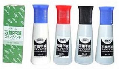 出厂公司:日本shachihata旗牌 容量 :55CC0CC 包装 :玻璃瓶装 颜色:红、黑、蓝、绿、白等常用颜色 产品介绍:SHACHIHATA旗牌TAT工业系列速干印油(油墨)专用于所有无吸墨性纸张、金属(SUS.黄铜、铝板),塑料(聚乙烯、乙烯、乙烯基、聚丙烯、聚苯乙烯泡沫塑料、硬质PVC、ABS塑胶片、天然橡胶)、玻璃纸、铜版纸、光泽纸、陶瓷、皮革、鹿皮、棉布、木材、PCB线路板等吸收性和非吸收性材质,印迹清淅、耐水性、耐摩擦、永不褪色,历久清晰,作商品批号、检验、出厂日期、有效期限、公司机关资产编号等…均可应用,效果显著。本产品通过最新SGS检测鉴定,本产品环境对应RoSH指令合格,不含铅、六价铬、水银、聚溴联苯(PBB)、聚溴二苯醚(PBDE)等六大有害物质,属环保型印油(油墨)。 使用方法: 请用瓶盖内连体毛刷沾取适量印油,涂刷于印台表面至微润即可。建议使用密封型空白印台,确保印油不被浪费。 具体规格与型号如下: 1、金属、塑胶、玻璃、皮革通用印油:STG-1、STG-3,容量:55CC、330CC,颜色:红、黑、蓝、绿、白,墨干速度:5-10秒钟;(5-10分钟) 2、金属、塑胶、玻璃、皮革通用速干印油:STSG-1、STSG-3,容量:55CC、330CC,颜色:红、黑、蓝、绿、白,墨干速度:1-5秒钟;(1-5分钟) 3、金属通用印油:STM-1、STM-3,容量:55CC、330CC,颜色:黑色,墨干速度:5-10秒钟; 4、金属通用速干印油;STSM-1、STSM-3,容量:55CC、330CC,颜色:黑色,墨干速度:1-5秒钟; 5、塑胶通用印油:STP-1、STP-3,容量:55CC、330CC,颜色:黑色,墨干速度:5-10秒钟; 6、塑胶通用速干印油:STSP-1、STSP-3容量:55CC、330CC,颜色:黑色,墨干速度:1-5秒钟; SOL-32(SOL-1-32)、SOL-32(SOL-3-32)等。 3、本公司环保不灭油墨、通过最新RoHs认证、