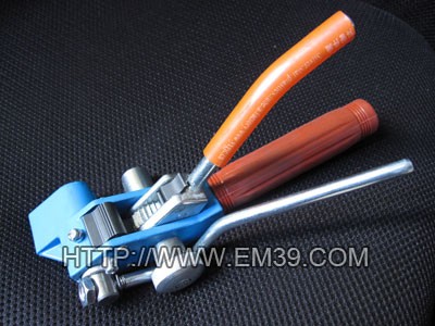 是一款集拉紧切断功能于一体的便携工具,内置一组钢带切断刀具,使用简便,是跟不锈钢扎带/盘带,扎扣配套使用,垂直拉力超过2400磅,最大切断宽度为25mm,是一款非常流行的便携手动工具。