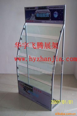 主要采用各种钢材,管材,型材为原材料,配合木质,有机玻璃等材料,制作各种精美的展架,展架采用180度高温烤漆,静电喷涂工艺,更加使展架本身的颜色鲜亮,富有光泽。