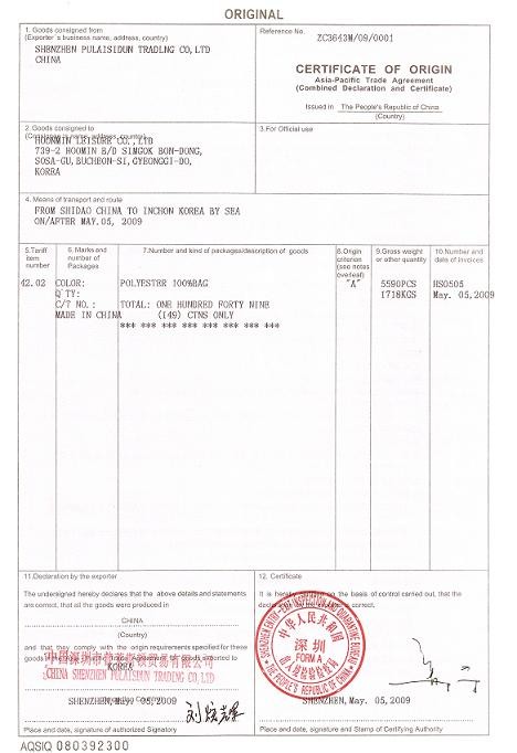 1.埃及使馆(北京/香港/上海)产地证/INVOICE/报关单/装箱单加签(认证);