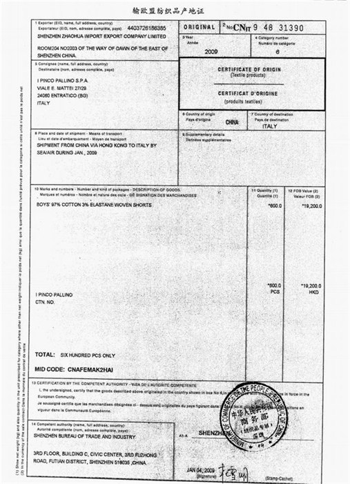 2、2009年度只需申领输欧纺织品产地证、OPT产地证。