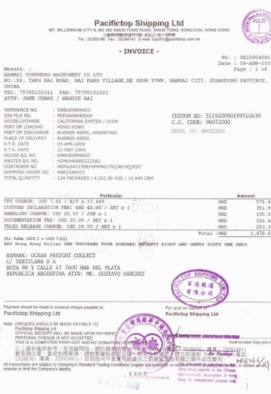 3.商检换证凭条/FA香港中检证书;