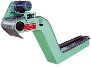 磁性排屑机产品说明: 本装置是利用永磁材料所产生的强磁场的磁力,将切屑吸附在排屑机的工作磁板上,或将油中、乳化液中的颗粒状、粉状及长度≤150毫米的铁屑吸附分离出来,输送到指定的排屑地点或集屑箱中。可处理粉状、颗粒状及长度小于100毫米的铁屑及非卷屑,或将油、乳化液中的碎屑分离,输送至指定的排屑箱中。