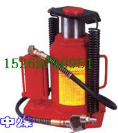 气动式千斤顶,涉及一种维修汽车用的千斤顶的改进。其特征是:在气缸内有数个套筒,气缸与套筒、套筒与套筒之间密闭滑动配合,气缸与套筒可形成一个密封体,在最中心内的套筒上顶固定有顶板,在气缸底部设有进气孔和排气逆止阀,气缸的进气孔和气泵通过气管连接,气管上安装有进气逆止阀,在泵箱内还设有压力表、照灯及开关。其有益效果是:取代了传统的油压式千斤顶,省时、省力、无污染,如夜间使用可开照明灯既方便又能提醒其它车注意,同时,气管换上轮胎充气嘴,还可给轮胎充气,实现一物多用。