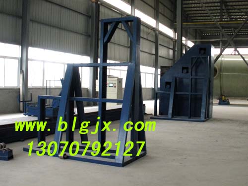 该设备一般用于现场缠绕直径在Φ4000-10000mm以内玻璃钢储罐、化工罐类制品的制造,也可用于其他行业制造线型缠绕类制品。它具有定位精度高、抗干扰能力强、操作调整方便、组装灵活、现场缠绕(解决大型罐运输不方便的难题)、操作方便等特点,具有广阔的应用前景。 二、组成结构: