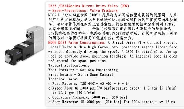 美国穆格MOOGD633,D634系列直动式伺服阀