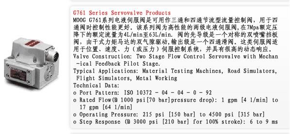 生产厂家: MOOG 产品说明: 流量控制:4-63 l/min(7.0 Mpa )阀降压最大工作压力:31.0 Mpa