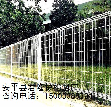 安平县君隆护栏网厂(联系人石经理 手机15003388794  电话0318-7977608 传真0318-8062608  QQ572421198)是专业生产各种高速公路防护网、高速公路护栏网、铁路护栏网、铁路防护网、隔离防护网、机场隔离网、围网、厂区小区围栏网、工艺护栏、铁艺护栏、铁艺围墙、场地围栏网,场地围网、体育场围网、运动场围网、篮球场围网、网球场围网、小区围网、生活区围网、仓库隔离网、围山网、刺网、刺绳围网、刀片刺网、刀片刺网、框架围网、双圈护栏网、生产车间隔离网、市政工程围网、园林围网、花园护栏、警戒区围界、监狱隔离网、柔性网、钢丝绳网、围墙网、建筑用网、砖带网、电焊网、勾花网、电焊片、网片、苗床网、温室大棚苗床网、热镀锌苗床网、镀锌苗床钢丝网、钢丝绳编织网、金属围网、金属焊接网、安全用网、龟甲网、圆孔网、冲孔网、石笼网、特种网、丝网深加工、篮、篓、筐、并生产各种组装围网、护栏网、桃型柱护栏,易按装,广泛用于石油、化工、建筑、纺织、医药等行业。产品特点:具有耐腐蚀、抗老化、耐酸碱、不退色、表面光亮平整、结实耐用我公司愿以网为媒,奉行质量第一,信誉至上,用户第一,让利用户的经营方针与四海宾朋、五洲商贾携手共图发展。
