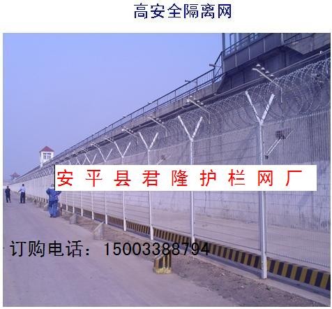 安平县君隆护栏网厂(联系人石经理 手机15003388794 电话0318-7977608 传真0318-8062608 QQ572421198)是专业生产各种高速公路防护网、高速公路护栏网、铁路护栏网、铁路防护网、隔离防护网、机场隔离网、围网、厂区小区围栏网、工艺护栏、铁艺护栏、铁艺围墙、场地围栏网,场地围网、体育场围网、运动场围网、篮球场围网、网球场围网、小区围网、生活区围网、仓库隔离网、围山网、刺网、刺绳围网、刀片刺网、刀片刺网、框架围网、双圈护栏网、生产车间隔离网、市政工程围网、园林围网、花园护栏、警戒区围界、监狱隔离网、柔性网、钢丝绳网、围墙网、建筑用网、砖带网、电焊网、勾花网、电焊片、网片、苗床网、温室大棚苗床网、热镀锌苗床网、镀锌苗床钢丝网、钢丝绳编织网、金属围网、金属焊接网、安全用网、龟甲网、圆孔网、冲孔网、石笼网、特种网、丝网深加工、篮、篓、筐、并生产各种组装围网、护栏网、桃型柱护栏,易按装,广泛用于石油、化工、建筑、纺织、医药等行业。产品特点:具有耐腐蚀、抗老化、耐酸碱、不退色、表面光亮平整、结实耐用我公司愿以网为媒,奉行质量第一,信誉至上,用户第一,让利用户的经营方针与四海宾朋、五洲商贾携手共图发展。