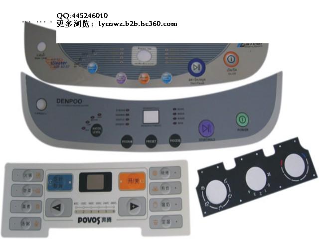 专业生产:透明贴膜面版、磨砂贴膜面版、带胶贴膜面版、塑料贴膜面版、洗衣机贴膜面版、冰箱贴膜面版、电饭煲贴膜面版、机械贴膜面版、电子贴膜面版、电子显示屏贴膜面版、麻将桌贴膜面版、热水器贴膜面版、太阳能贴膜面版、跑步机贴膜面版、甩脂机贴膜面版、瘦身机贴膜面版、ktv贴膜面板、瘦身腰带贴膜面版、小电器贴膜面版、健美机贴膜面版、电器开关控制面版、触摸屏贴膜面版、按纽控贴膜制面版、按键控制贴膜面版、仪器控制贴膜面版、饮水机控制面版、pvc控制面版、测量仪器控制面版、分析仪器控制面版、数控机床贴膜面版、电子秤医疗仪器贴膜面版、通讯仪器控制贴膜面版、航海仪器贴膜面版、电风扇贴膜面版、音响贴膜面版、影视面版、遥控器贴膜面版、电子线路贴膜面板、微波炉贴膜面版、电磁炉贴膜面版、空调贴膜面版等各种PVC、PET、PC电器控制贴膜面板。公司本着“诚信经营”和原则,以质量为企业根本,以价格为优势。热忱欢迎广大新老客户来电、来函、来人洽谈业务,我们将竭诚为您提供最优质的服务。