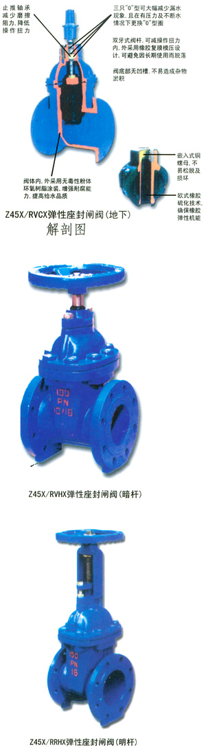 本企业引进国外先进技术所生产的软密封闸阀,克服了一般闸阀密封性差,弹性疲乏,易生锈等缺陷.软密封闸阀是传统闸阀的换代产品,利用弹性闸板产生微量变形的补偿作用,达到良好的密封效果,该阀具有开关轻巧,密封可靠,弹性记忆佳及使用寿命长等显著优点.可广泛应用于自来水,污水,建筑食品,电力,医药,冶金,轻纺,能源系统等流体管线上作为调节和截流装置使用.