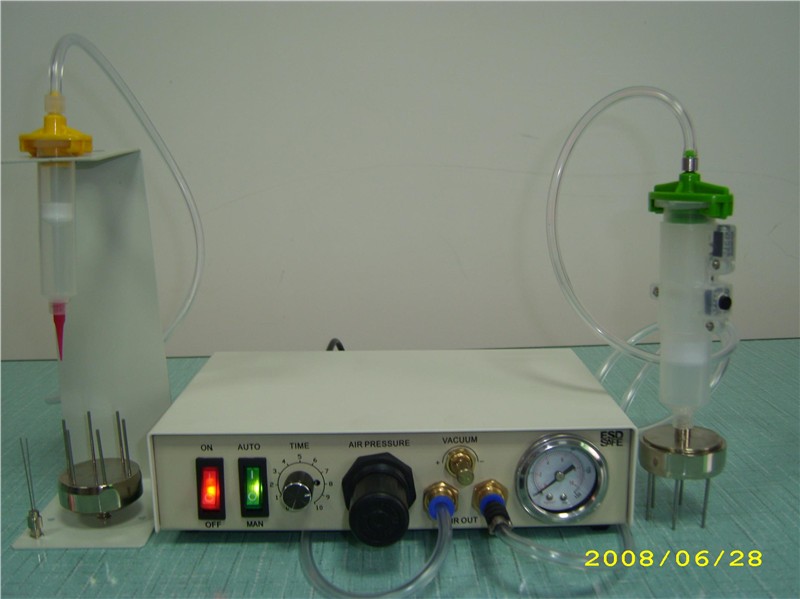 双路滴胶机是为了适应要求点不同形状的产品而设计的,可同时点多个不同形状的点。 本机是一种同一控制电路同时控制两个点胶针筒的多头同步点胶机,由一个脚踏开关控制起动,只要保持气压稳定,时间长短相同,滴出的液料滴量大小一样。 用户可以使用两个中的任意一个,适用于多点同时灌注。真空抽吸控制可调,以消除点胶中的滴漏现象。点胶时间从22秒分为段调,其基本功能与982型号相同。