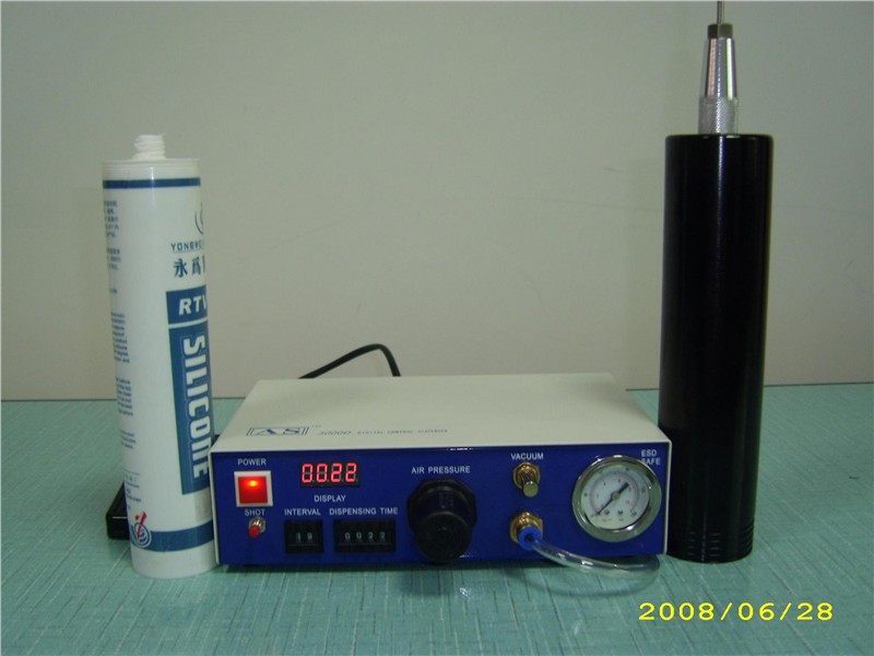 产品说明: 产品说明:硅胶专用点胶机(13189686554)此机是专为硅胶和其他流动性差、粘度高的胶水所独立设计,特别适用点包装为300毫升每桶的硅胶、玻璃胶的产品。 功能说明及产品特性: 1、有自动定量和手动两种模式 2、由定时器控制每次滴胶时间,定时定量出胶,确保每次滴胶量一致 3、调节气压,选择适当的针咀,便于改变每次滴胶量和滴胶时间,适合不同需要 4、输入气压为:2.5——7bar 输出气压为:0.01——5.5bar 5、可配合压力桶一起使用