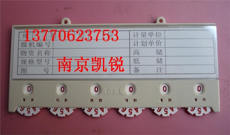 材料卡,南京物资标牌,磁性标签卡,标牌--1 3 7 7 0 6 2 3 7 5 3/0 2 5 8 5 5 6 1 5 7 5/0 2 5 8 3 3 6 4 7 2 1/1 3 3 8 2 7 6 1 7 3 6/1 3 3 8 2 0 0 2 1 8 3由ABS工程塑料制成,广泛应用于机关、部队、企事业单位的仓储管理。它背面特有的强磁材料,可以直接吸附在货架上,下部有记录库成量的转盘,规格有A、B、C、D、E、F、G、H、等,可以使它直接吸附在铁质货架上,上半部份插卡片,记录材料名称、规格、型号,下半部份转盘显示库存数量,转盘有定位,有A型、B型、C型、D型、E型、F型、G型、H型、K型,E型可以直接记录入库、出库、库存量,适用于企业的认证、升级、创一流。该产品经全国各地供电局、电厂、炼油厂、钢铁厂、造纸厂、电子企业、机械制造业、自来水公司等单位使用效果良好.--1 3 7 7 0 6 2 3 7 5 3